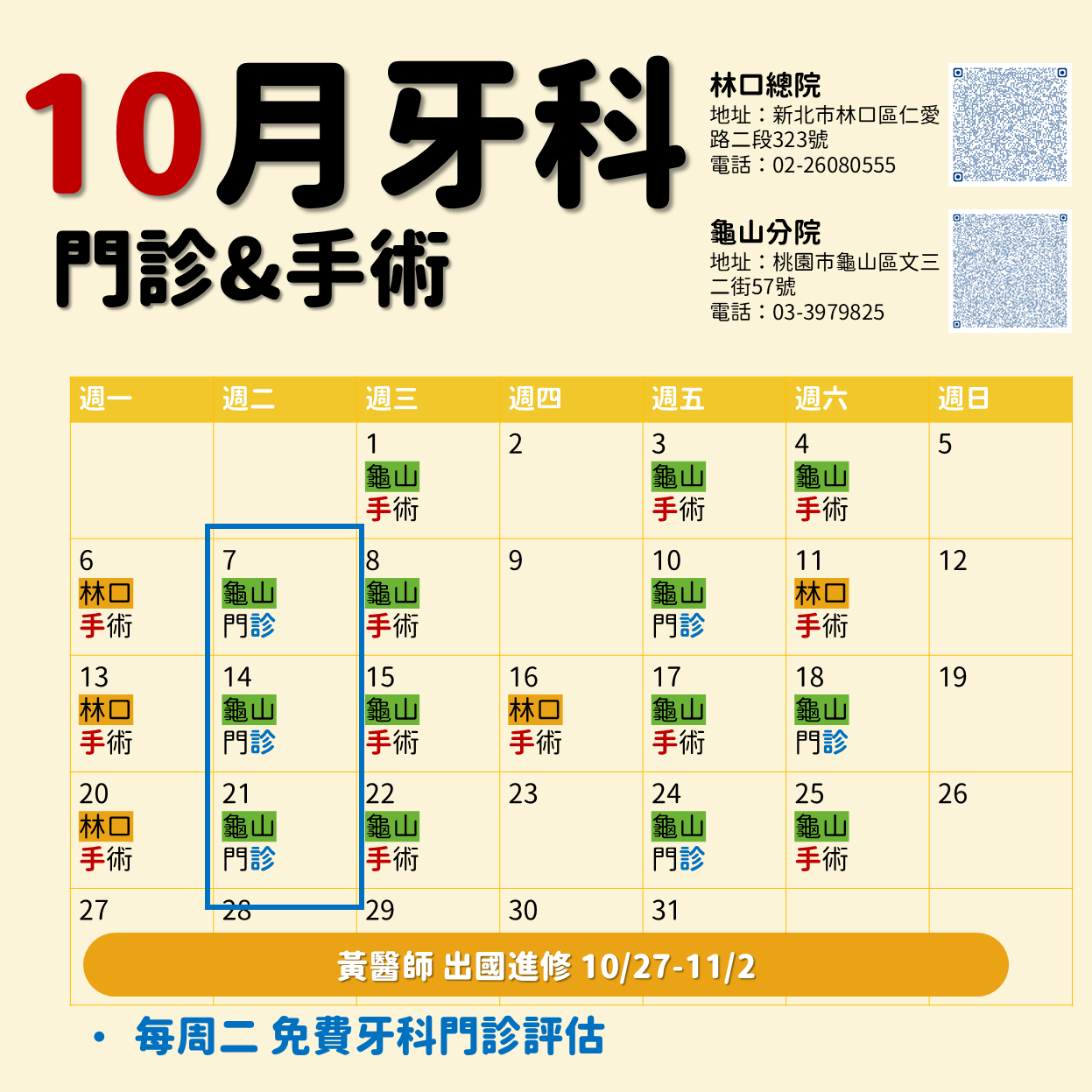 十月份因應院內人力安排,牙科門診與手術時段有較多異動,請各位飼主留意班表並提前預約,以利為毛孩安排最適合的治療時程。