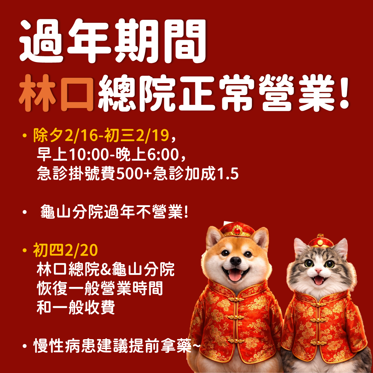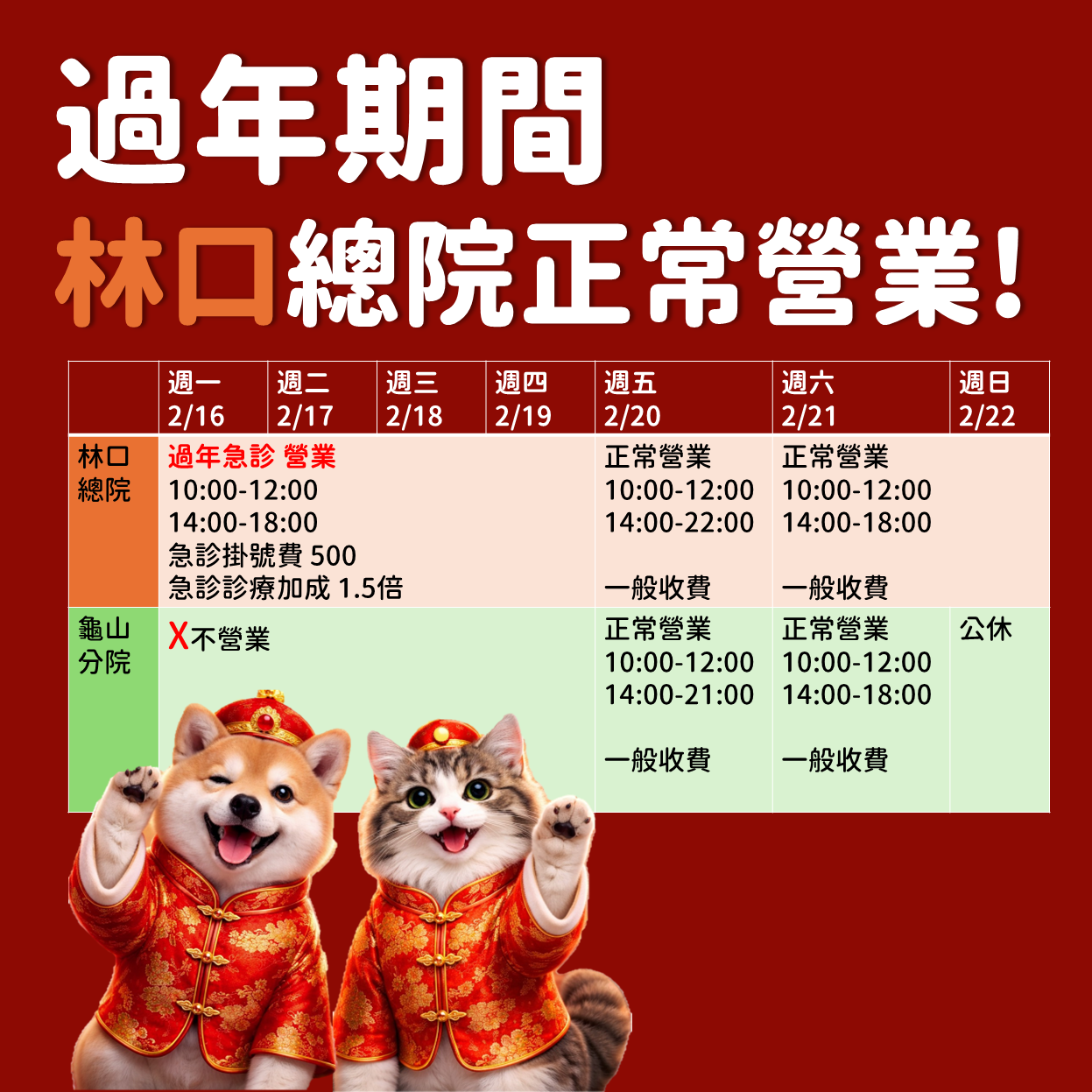 過年期間僅【林口總院】提供醫療服務